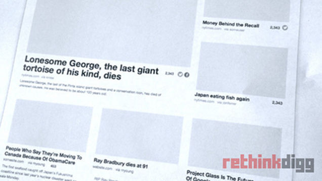 Based on what we can tell, the company is trying as hard as it can to distinguish itself from Reddit. Instead of lone headlines, it'll have big images. Do you find Reddit's comment trolls toxic? Digg won't have any for now. Digg has been ailing for a long time, and this is an admirable effort to resurrect the once eminent site. Let's hope this new design is the first step towards beating back the reaper. [RethinkDigg]