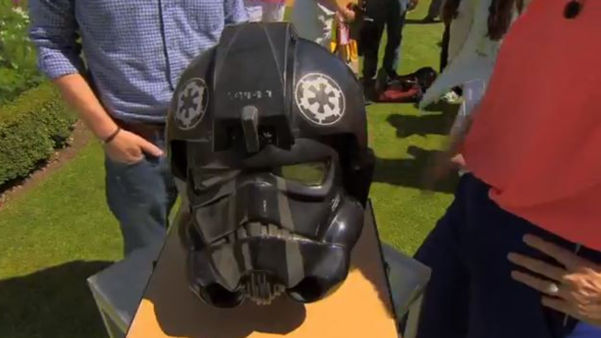 The helmet, a TIE Fighter Pilot's headpiece from A New Hope, is one of only 12 ever made for the movie, and was reportedly found in the attic of the crew member it was gifted to over 30 years ago - but was bought by Star Wars fan and collector Stephen Lane for a few thousand pounds before he bought it to Antiques Roadshow to see how much it was really worth. In tonight's episode, Presenter Fiona Bruce comes across Lane and the helmet, which is valued by the show's experts as being worth £40-50,000 (roughly $60-80,000) - much to the almost dismay of Bruce, who raps her knuckles on the prop before declaring that to 'anyone not of [Lane's] world' it's worth is astonishing.