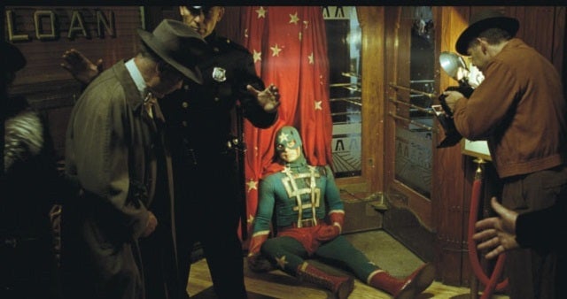 Capes aren’t the best accessories to sport in the midst of combat. They conveniently double as nooses, tend to get caught on nearby architecture, and generally impede what would otherwise be graceful movement. But villains seldom use wind tunnels or hooks to take advantage of this handy feature. One exception involves the sad tale of Dollar Bill’s death in the Watchmen universe. An in-house superhero for a local bank, he gets his cape caught in a revolving door while trying to stop a robbery and ends up shot before he can pull it free. Given the number of caped superheroes running around, surprisingly few villains have followed the bank robbers’ example.