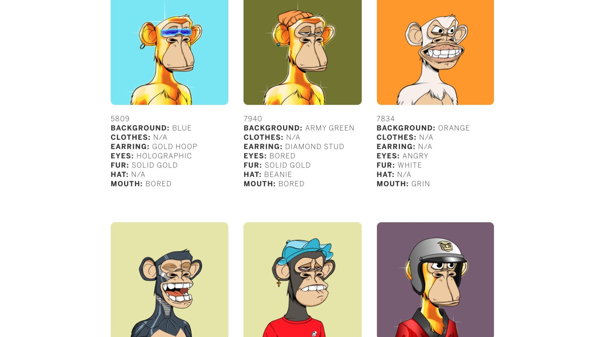 The aforementioned apes are known as the Bored Ape Yacht Club, a collection of 10,000 unique NFT’s featuring, well, bored apes: bored apes in party hats, bored apes smoking cigarettes, bored apes wearing 3D glasses, you name it. Yuga Labs, the collective that rolled out the ape collection earlier this year, explains that each ape is “unique and programmatically generated from over 170 possible traits,” including their clothing, headgear, and bored expressions. And as the club’s website states, “all apes are dope, but some are rarer than others.”