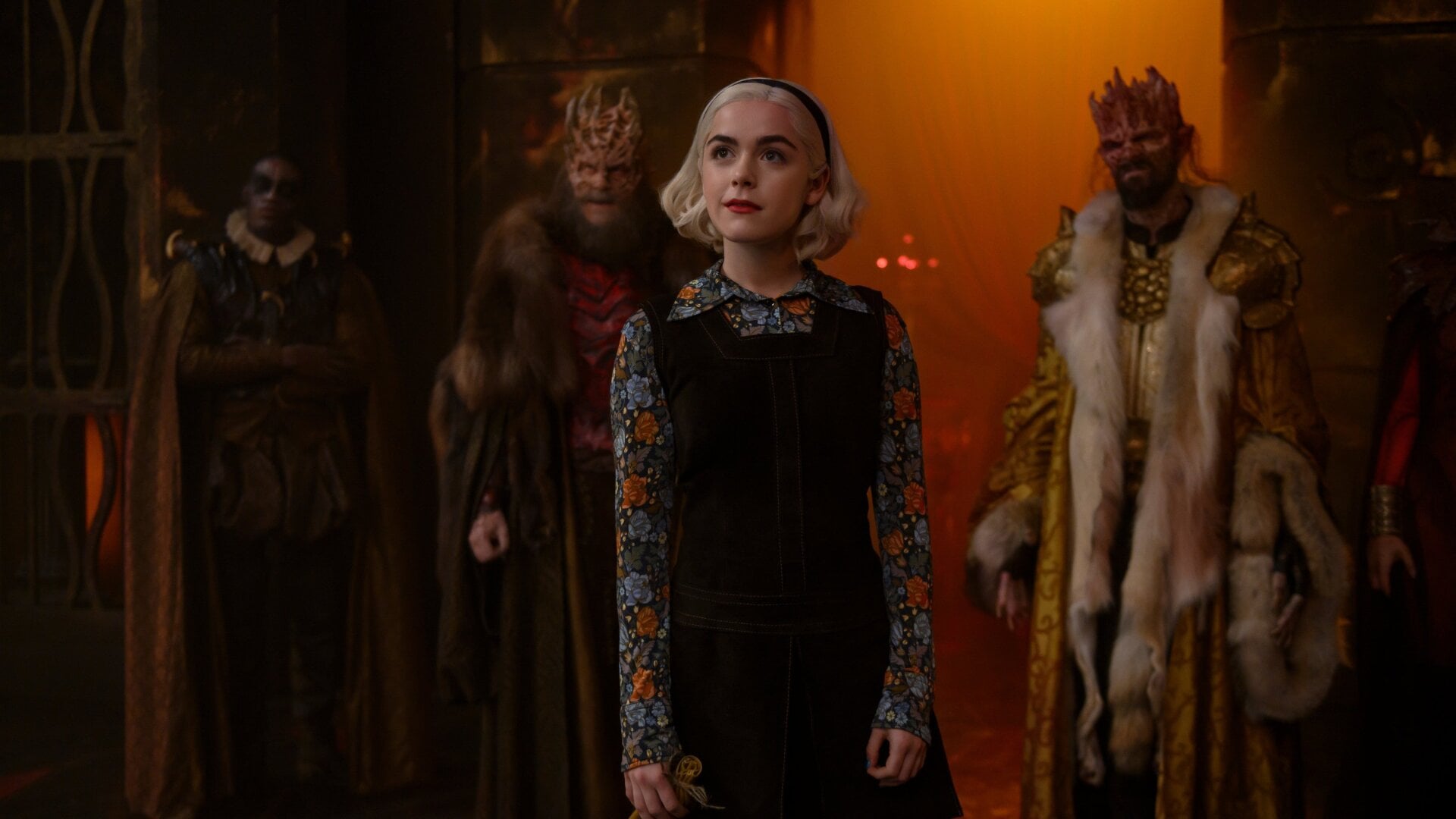 After restoring the world to its nature-free natural order, Sabrina chooses not to return to the rock but instead goes back even further, to when Caliban was about to trap Sabrina in the rock in the first place. The two Sabrinas have a chat about how much they want to be both a normal teenager and the evil ruler of Hell. So, what if they could have both? It’s time for a good ol’ fashioned Parent Trap. The future Sabrina returns to the Spellmans to restore the coven and live life as a regular witch. The one from the past completes her quest, banishes Caliban, and rises as the Queen of Hell—even though Lucifer is alive again and could totally take it for himself again, but doesn’t? Cue the 18th-century wig!
