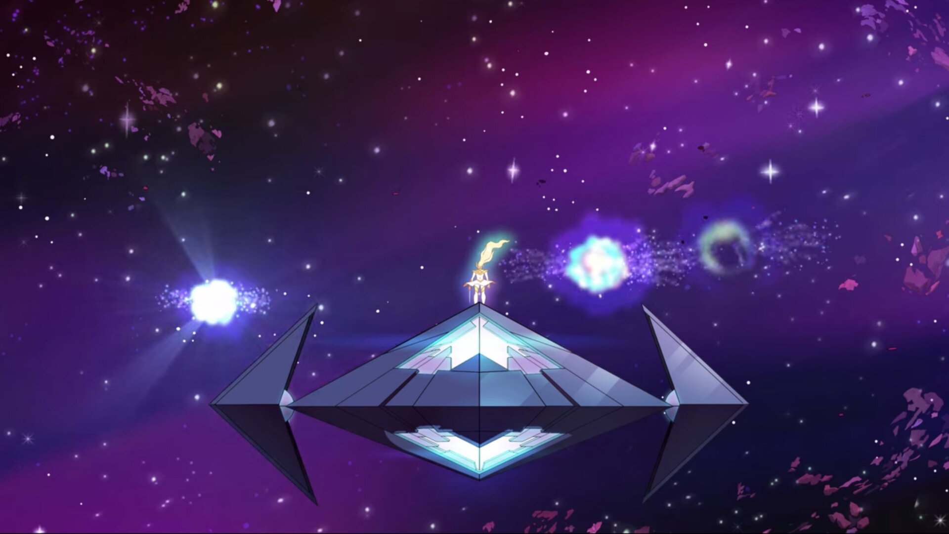 Adora gained a new determination (and costume) midway through the season that culminated in one really cool battle. As Horde Prime’s fleet nipped at the heels of the battered ship She-Ra and her friends were attempting to return home in, she took her new fierceness and kicked the ever-loving crap out of them. In space.