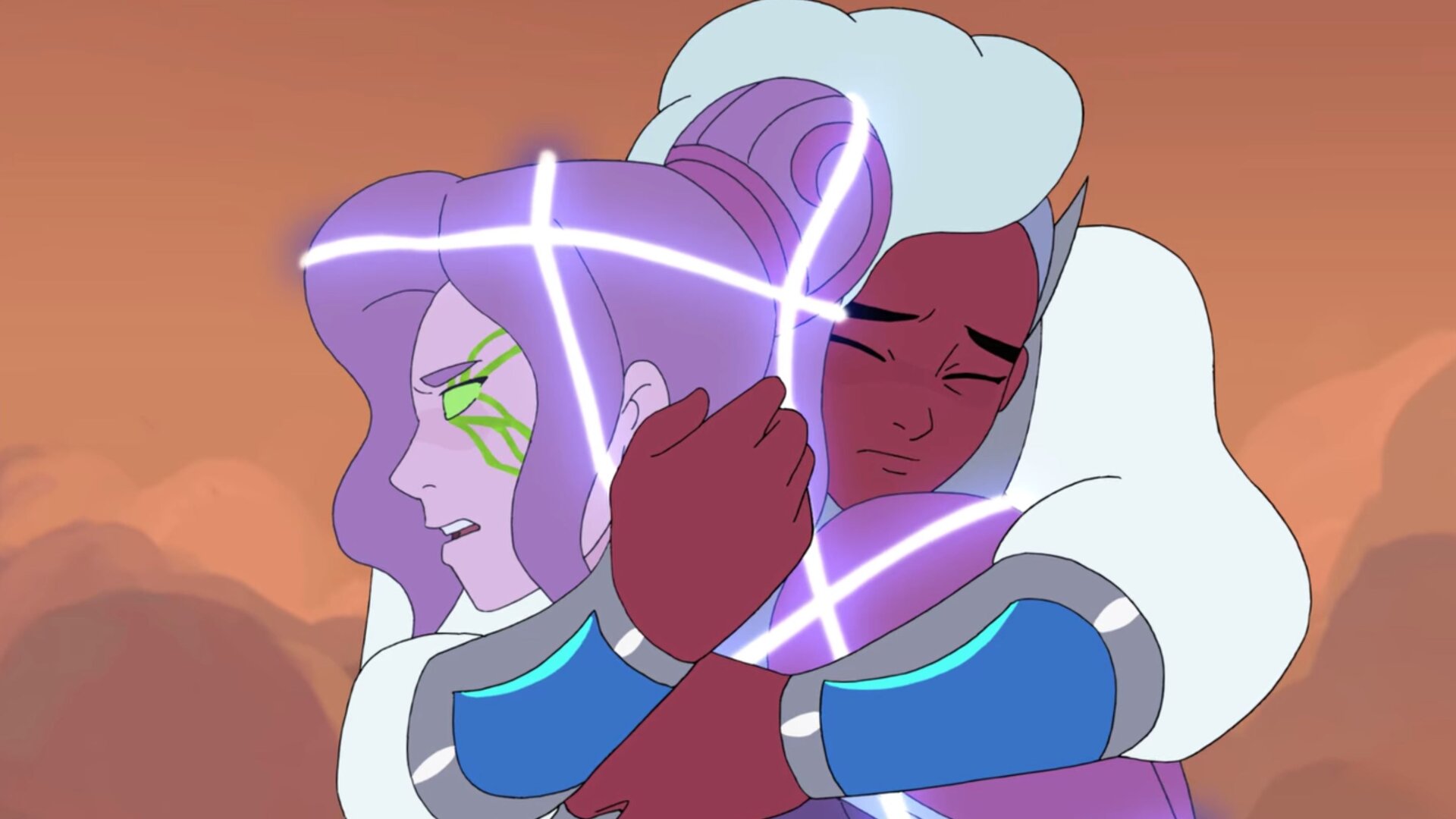 Forgiveness as a superpower is very much en vogue in the queer, epic animation space, to the point that one could easily feel as if there wasn’t really all that much more to be done with it. Out of all of She-Ra’s complicated relationships, Shadow Weaver’s dynamic with Catra and Adora has been fascinating to watch because it’s always been implied that, as messed up as Shadow Weaver is, she’s the closest thing to a mother that either of them ever had. After spending years emotionally torturing Adora and Catra, Shadow Weaver understood that the only way she could ever truly show them she cared was by putting her life on the line and using all of her magical prowess to make sure that her daughters had a fighting chance to live.