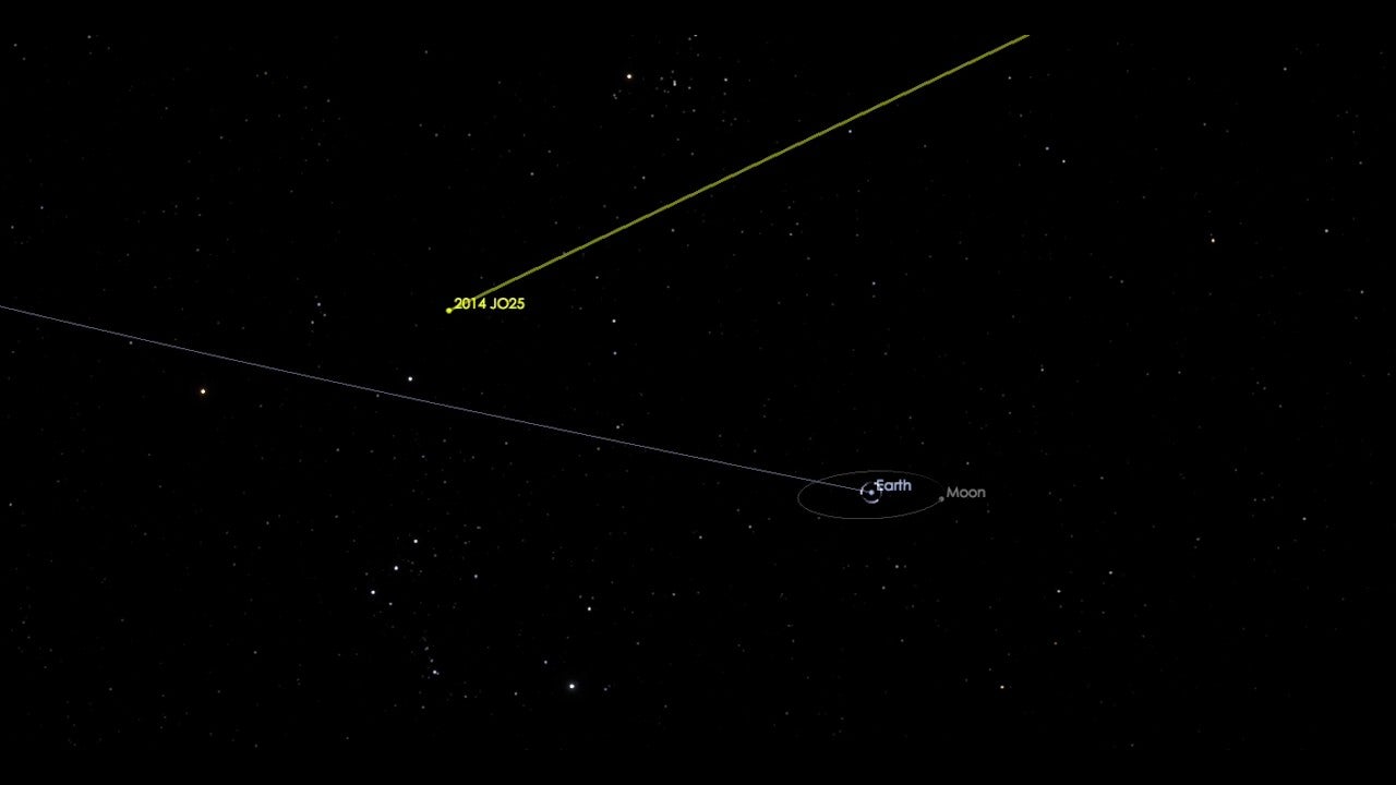 “Although there is no possibility for the asteroid to collide with our planet, this will be a very close approach for an asteroid of this size,” NASA said in a statement. The agency added that it’s not uncommon for smaller asteroids fly by Earth at the same distance that 2014 JO25 will, but its size is noteworthy. “This upcoming close approach is the closest by any known asteroid of this size, or larger, since asteroid Toutatis, a 3.1-mile (five-kilometer) asteroid, which approached within about four lunar distances in September 2004.”