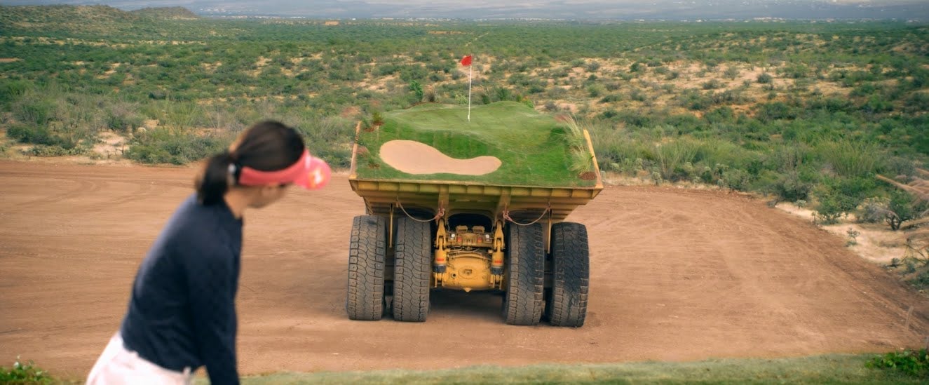 There’s no better way to make an excruciatingly boring day feel even longer than with a round of golf. Watching it being played is even worse, unless the golf course happens to be on the back of gigantic earth-moving equipment. Now you’ve got our full attention.