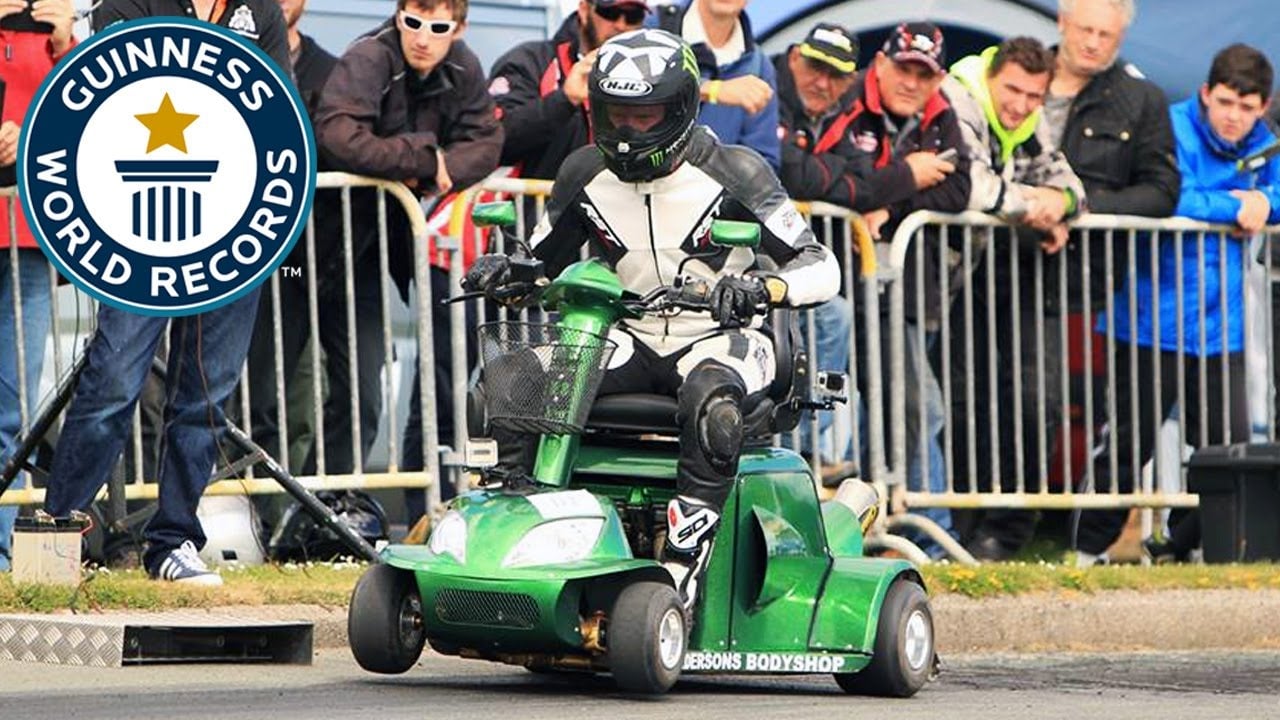 To build their beast, the team merged the scooter with the best parts of a go-kart, including racing slicks and a Suzuki engine. The result is an official Guinness World Record for their Frankenstein-like creation.