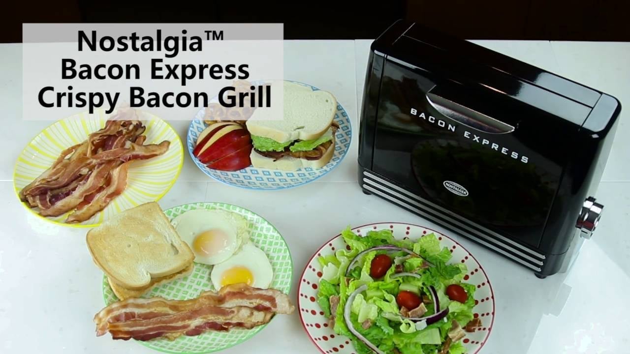 If you find your kitchen counters cluttered with food-specific gadgets and appliances, you finally have a good reason to get rid of them all. The culinary innovators at Nostalgia Electrics have created the only thing you’ll ever need: The Bacon Express, a toaster that cooks delicious slices of pork instead of bread.