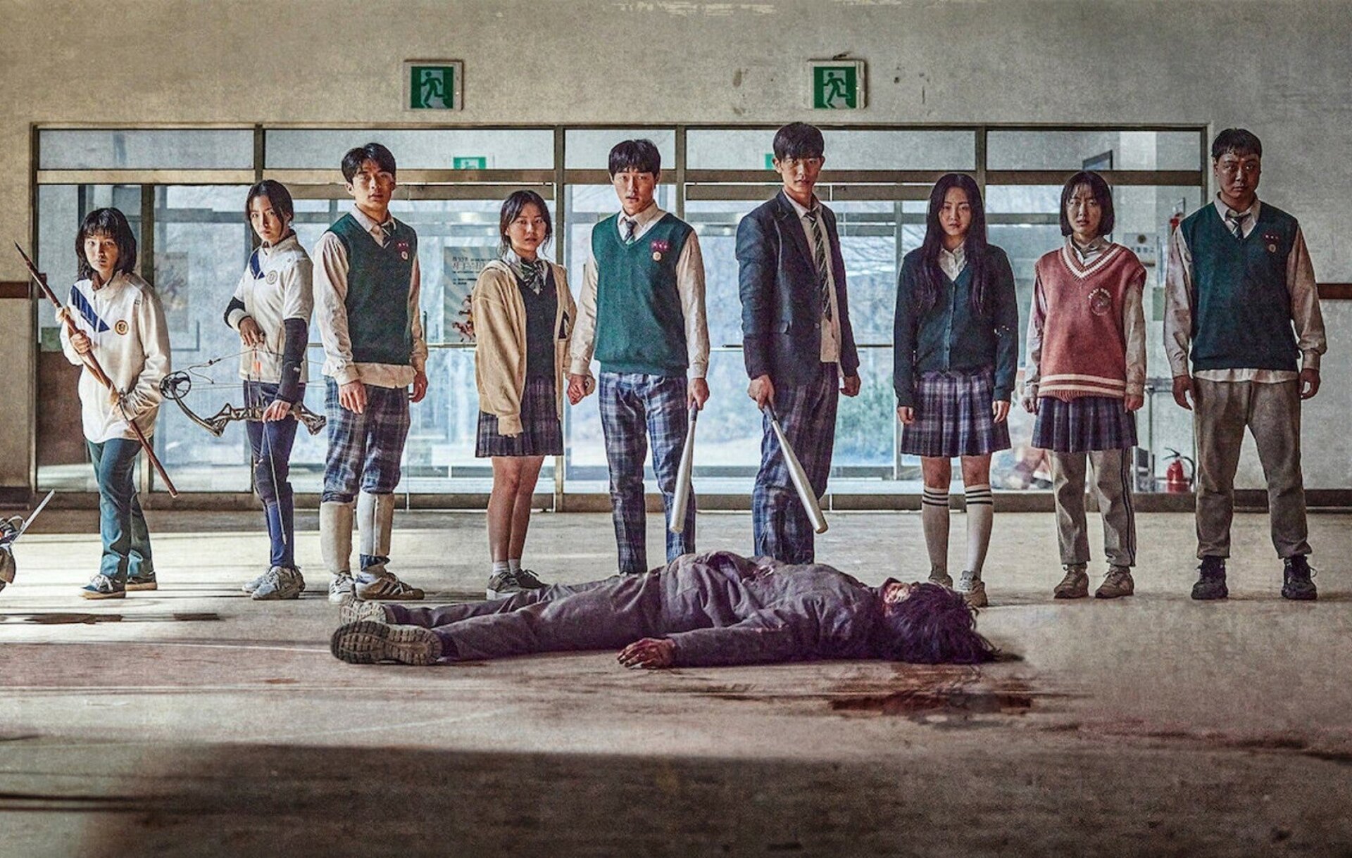 The setup is fairly simple: a group of South Korean high schoolers have to band together to survive a zombie outbreak that’s begun at their school. Bad news: there’s a lot of students at the school, and it won’t be long before the infection naturally spreads to the rest of the city. But the good news is that the kids have seen zombie films (Train to Busan gets a shoutout) and know how to defend themselves, either with martial arts or whatever’s lying around in their school like archery equipment. With no food or way to contact their families, the kids are effectively on their own. While they do their best to survive, the high school teacher will be confronted about his connection to the accidental outbreak and what, if anything, can be done to prevent the world from being zombified.