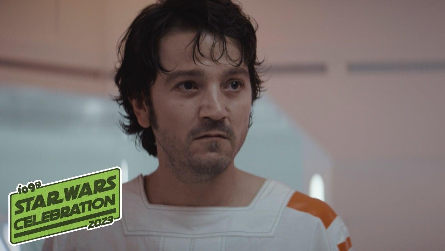 “When we weren’t shooting? I wore sneakers!” Diego Luna told the audience of filming the Narkina-5 prison arc, which saw Cassian imprisoned and sent to a prison dominated by the sterile white smocks and shoeless prison garb of its inmates—a discomfort to accommodate the prison’s electrified floors.