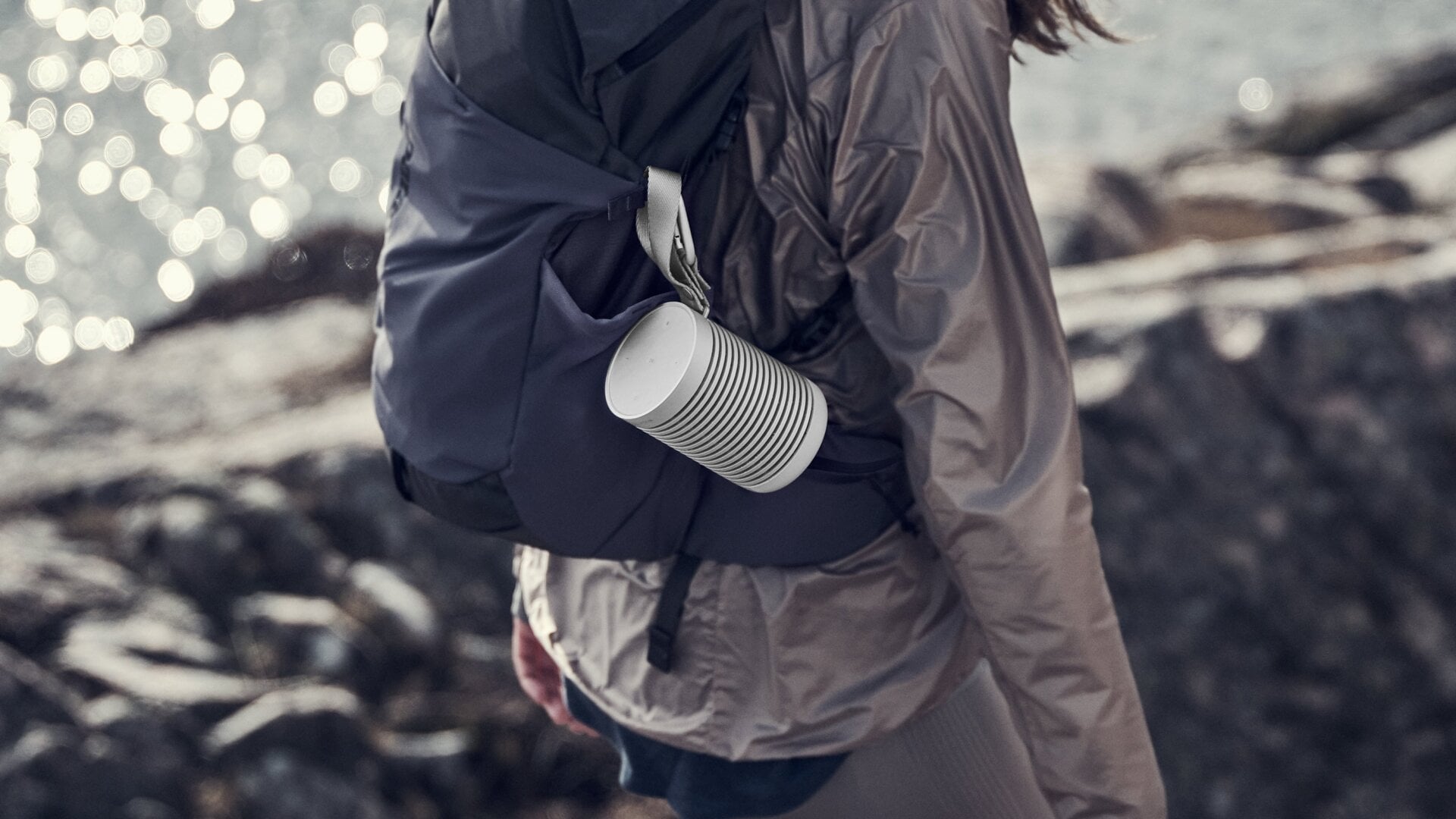 There are currently two color options available now through Bang & Olufsen online and IRL stores: Black Anthracite and Green, while, Grey Mist, a third option that really drives home the soup can aesthetic, will arrive later this summer. The grill design is also promised to provide extra grip and to help ensure the Beosound Explore stays securely in a pack’s outer pocket—but for added security, an integrated strap and carabiner are included. It’s not as light as a pair of headphones, but because it’s made from aluminum, even with a rechargeable battery inside that’s good for 27 hours of playback the speaker weighs in at 631 grams, or just shy of a pound-and-a-half.