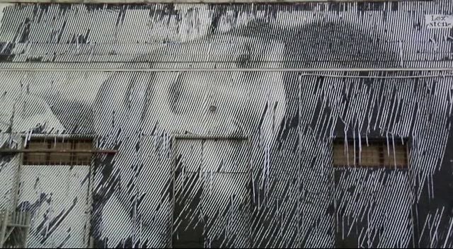 Italian artists Sten and Lex have created a building-sized mural using a stencil method they call “hole school.” The duo apply a series of stencils to their canvas—in this case a building—then slice out and paint strips to create amazingly life-like images.