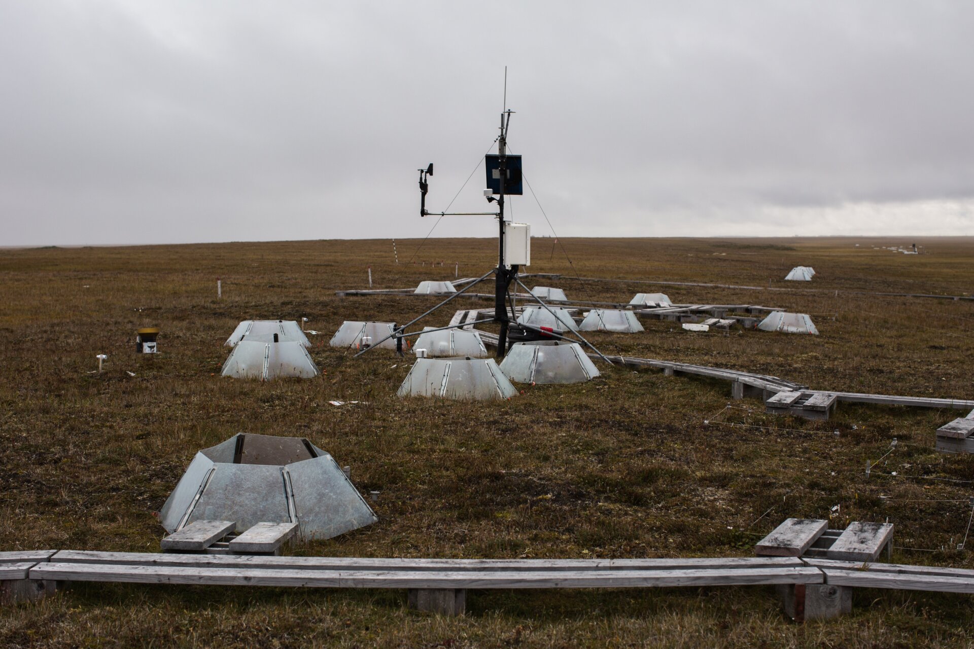 Ten feet from where I’m standing on a narrow wooden walkway hemmed by gnarled sedges and moss, the land bottoms out into a waterlogged basin. “This depression is all thaw related,” says Northern Arizona University ecologist Meghan Taylor, gesturing across the Carbon in Permafrost Experimental Heating Project, a patch of tundra that scientists have been deliberately warming since 2009. Peppered with cables, pumps and environmental sensors, the experiment offers scientists a glimpse of what’s to come as Alaska’s vast and remote permafrost landscapes warm at some of the fastest rates on Earth.