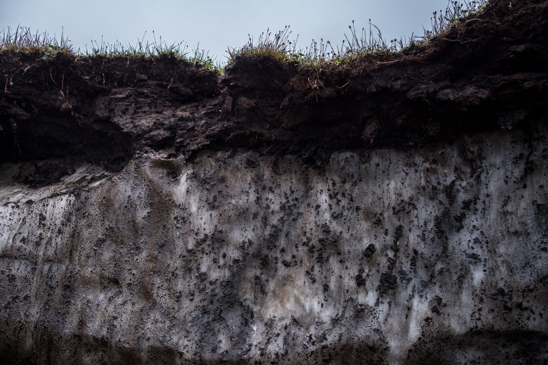 More carbon enters the ground than can be decomposed by microbes, causing it to accumulate—which is why in parts of Alaska, you can find soils that are tens to hundreds of feet thick with organic matter. Below the first few feet, it tends to stay frozen all year. Scientists estimate that anywhere between 1,300 and 1,600 billion tons of carbon are locked away in permafrost soils, roughly twice as much as is currently in our atmosphere.