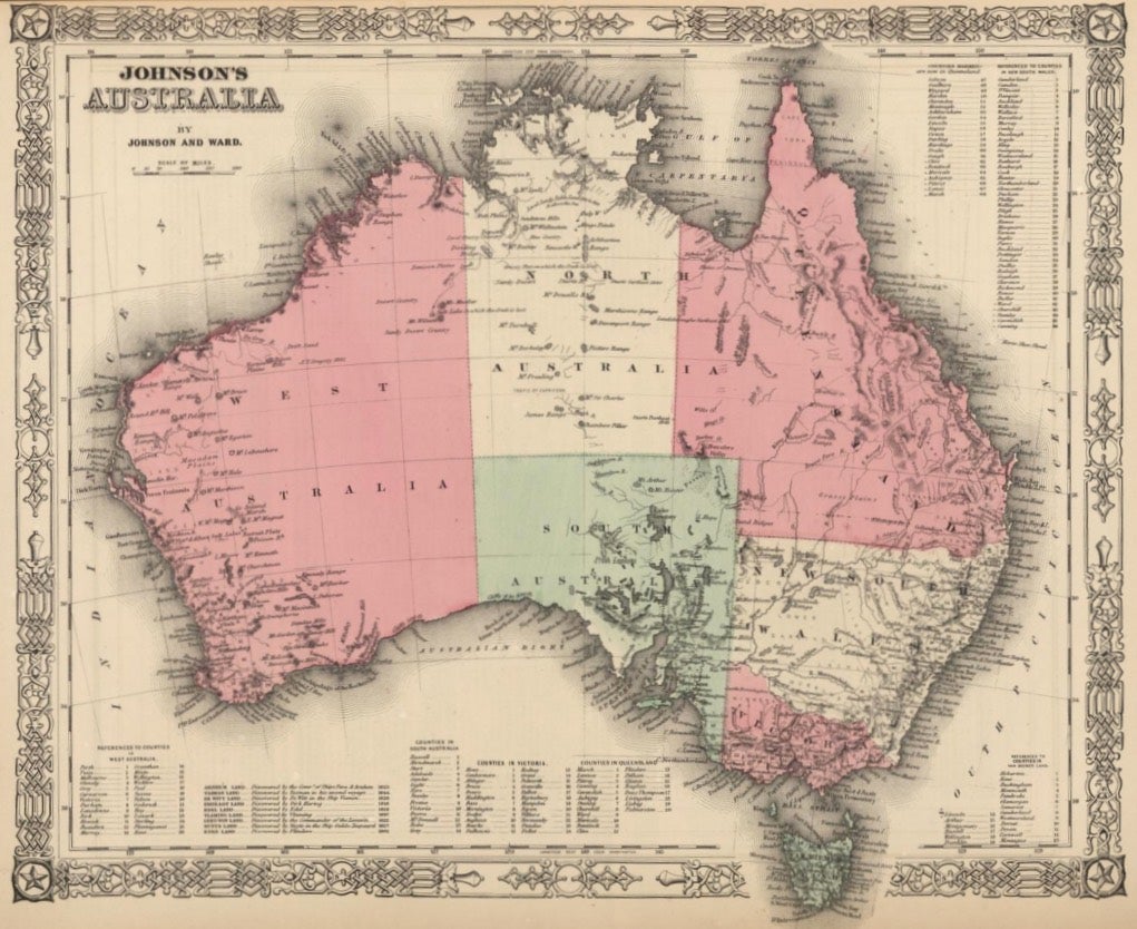 Map of Australia in 1864 via David Rumsey