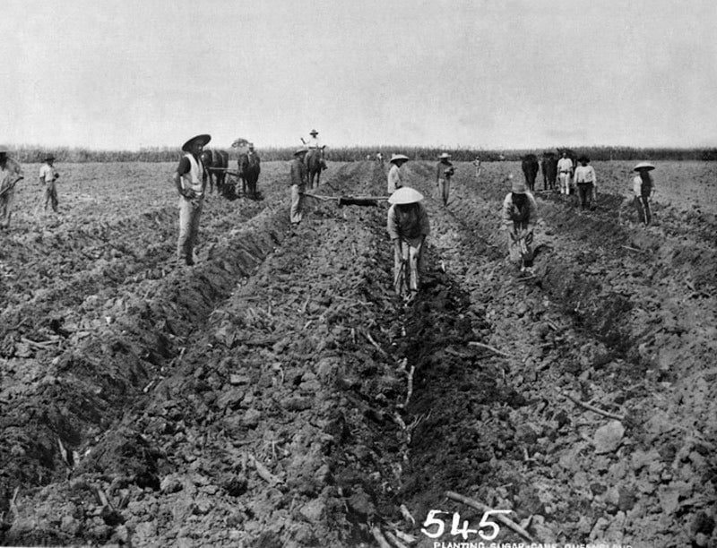 Chinese workers planting sugar cane near Cairns circa 1878 (Queensland State Archives)