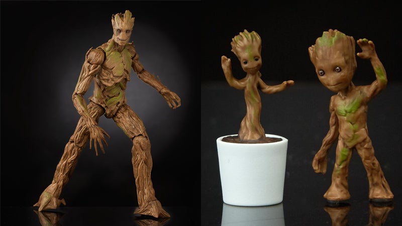 Teaming together three previously released versions of Groot as he appears in the Guardians of the Galaxy movies—the 9-inch “adult” from the first film, and then 1-inch figures of the twiglet baby from the end of that film and the “toddler Groot” from Guardians of the Galaxy Vol. 2—this set lets you watch Groot…grow? In reverse? Sort of? No wonder toddler Groot looks like he’s seen some shit. It’ll be available this September, for $22. [Toyark]