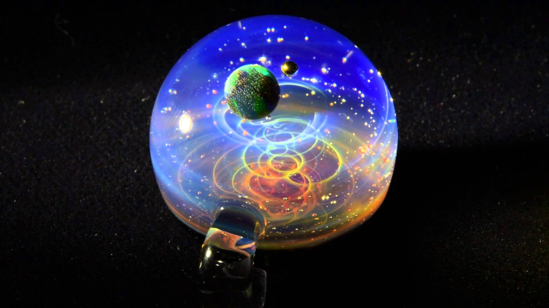 That’s thanks to Japanese artist Satoshi Tomizu, whose gorgeous Space Glass ornaments are like miniaturized planetary systems within colorful nebulas. Each one unique, these cosmic bubbles (which conveniently fix to a chain so you can wear ‘em) contain flecks of gold that shimmer like brilliant stars. At the center of the ornament lies an iridescent, black or white opal—your very own celestial body.