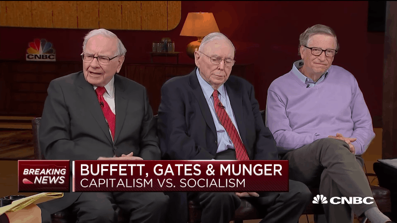 Billionaires Bill Gates, Charlie Munger, and Warren Buffett were interviewed on CNBC this morning, and it wasn’t surprising to hear the three men defend capitalism. But it was surprising to hear Gates make a really good point about socialism. Or, at least a good point about how socialism is defined in the U.S.