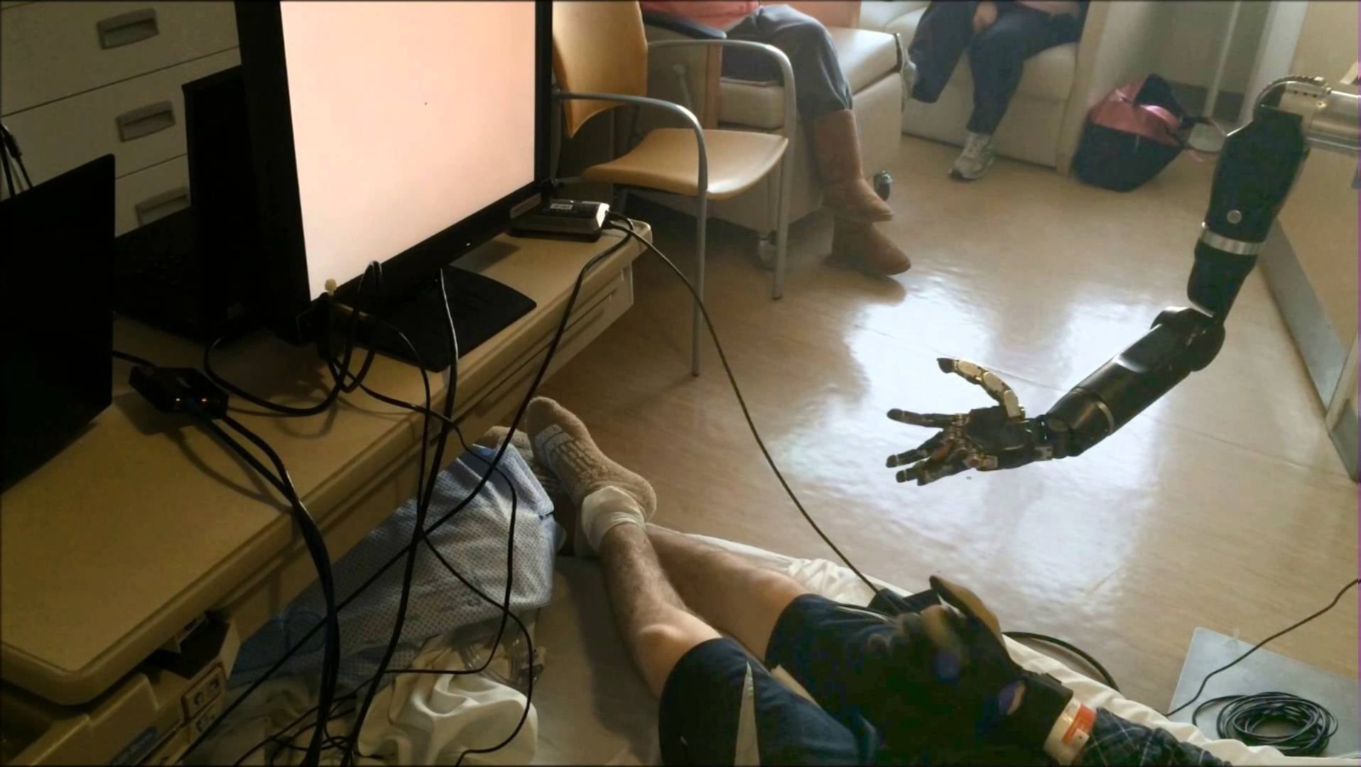 The array of 128 electrode sensors was placed on the part of the brain responsible for hand and arm movements. A computer program was used to interpret the data streaming from the implant, triggering the individual fingers to move.