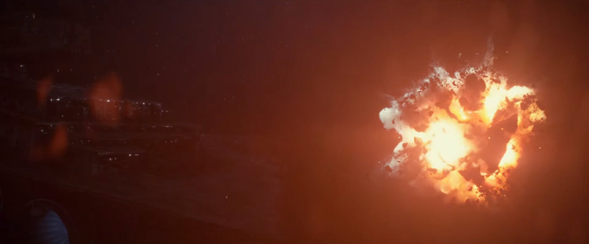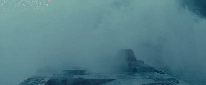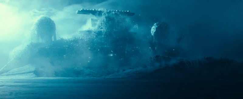 After another brief glimpse of Rey and Kylo Ren’s watery duel, we get this incredibly brief but incredibly interesting shot. You can barely make it out against the dark of space and the violent explosion, but you can see the light of its engines and the ports on its hull. It’s an Imperial Star Destroyer, blowing up something huge. It doesn’t look like a rival ship exploding. It looks like a planet, or a planetoid. Maybe it’s even Kijimi, the results of those bombardments we’d already seen, after the fleet is freed from ice.