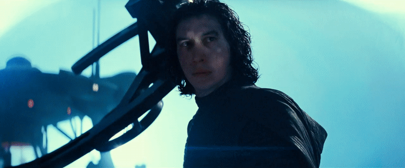 Because amid the wash and mist, comes Mr. Darcy Kylo Ren (Adam Driver), adding a flat “But I do” to Rey’s narration. He readies his own saber, for a fight we briefly glimpsed in the footage shown at D23…but is Ren really fighting Rey, or is he simply trying to lead her somewhere?