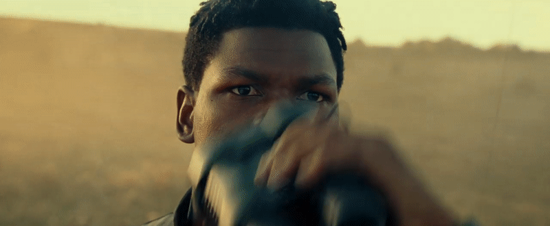 “The Force brought us together,” Finn concludes, as we get a shot of the man himself using some macrobinoculars. Although the color tone would want you to believe that this is the desert world glimpsed in prior trailers—which we know is named Pasaana thanks to another merchandise tidbit, this time a Lego set—the environment is certainly less arid. The fields make it look more like the world the Resistance finds the Death Star II ruins on (just less rainswept than we’ve seen it), and match up with promo shots we’ve seen of Naomi Ackie’s mysterious new character, Jannah. More on her later!