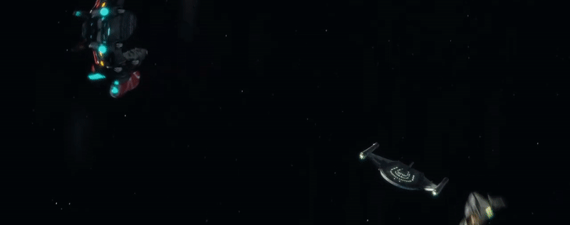 It’s not long before we get to see it in some very interesting action, too, as Rio’s ship and an unidentified vessel open fire on what is a very familiar ship: a Romulan Warbird. And not just any warbird, but the Bird-of-Prey, the iconic 23rd-century Romulan ship class introduced back in the original Star Trek. What the hell is one doing in the late 24th century? Well, given that Romulus itself has been wiped out with the Hobus star going supernova in 2387, it stands to reason that what is left of the Romulan Star Empire at this point is in a state of disarray. If much of the modern fleet was wiped out in Romulus’ destruction, maybe they’ve had to fall back on adapting old ships to 24th century standards?