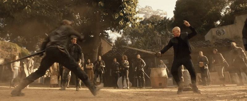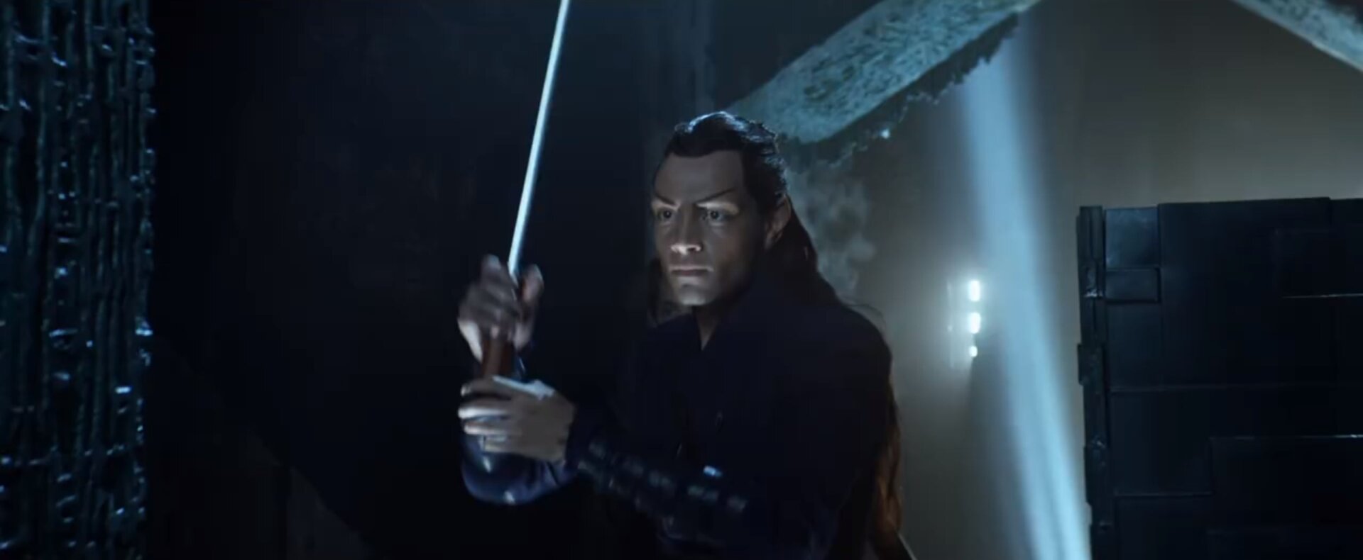 Another quick cut to another world—this one much more low-tech and briefly glimpsed in the last trailer as where Picard got manhandled by some Romulan guards—and another member of Picard’s new team: Elnor (Evan Evagora), wielding his sword in front of what appears to be that same establishment Picard encountered those Romulans. Given what appears to be a cosmetic update to Romulan makeup for Picard that heavily downplays the forehead ridges that contrasted them from their sister species, the Vulcans, it’s still hard to tell if Elnor is a Romulan who goes against whatever his fellow Romulans are cooking up with the Borg, or a Vulcan that just happens to be a bit of a Samurai-esque figure roaming the galaxy brandishing space-katanas at people.