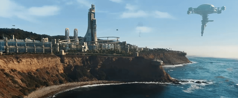 We quickly cut to a shot of what appears to be another world, and a high-tech facility floating above a futuristic city. This at least appears to be where Doctor Agnes Jurati works (and is keeping that B-4/Lore/Data/Whoever the hell’s body is in storage).
