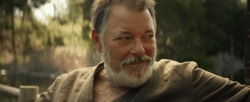 Anyway, one more shot of that classic Bird of Prey chasing Rio’s ship later, and we’re back outside the Riker household, as Jean-Luc and Will relax by the waterfront. “Thank you for not trying to talk me out of all this,” the good Captain says to his former Number One.