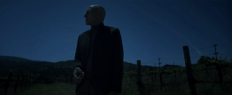 “I came here to find safety,” Picard tells us as he and Dog Number One go for a stroll in the vineyards of Chateau Picard. “But one is never safe from the past,” he continues…