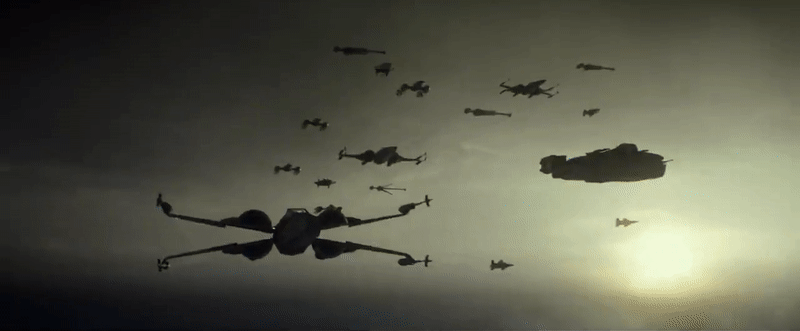 In the skies above an unknown world, a Resistance fleet jumps in from lightspeed. It’s a motley crew, but the shot reveals some familiar additions to the scattered guerilla’s group. Recent merchandise leaks confirmed the return of the Y-Wing bomber, joining the T-70 X-Wing from The Force Awakens and the RZ-2 A-Wing interceptor from The Last Jedi, but newly revealed here is the return of a Return of the Jedi classic: the B-Wing, a veritable flying tank of a bomber.