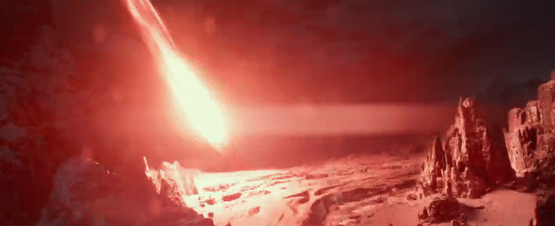 Before we have time to linger, however, we cut to this ominous shot of a mountain being torn apart by a furious beam of energy. It looks an awful lot like the planet we previously saw in the first trailer—as a ship that looked similar to the one Rey’s parents were seen in flying away from Jakku was passing over. But regardless of wherever it is, what’s causing this destruction?