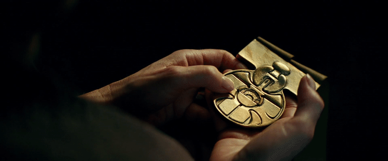 We then cut to a very interesting shot indeed—one of the medals that Leia (the late, dearly missed Carrie Fisher) gave to Luke and Han (Harrison Ford) at Yavin IV at the end of A New Hope. Don’t worry, they canonically added in a comic that Chewie got one too, but take a look at the hands: They look a lot like they’re Leia’s.