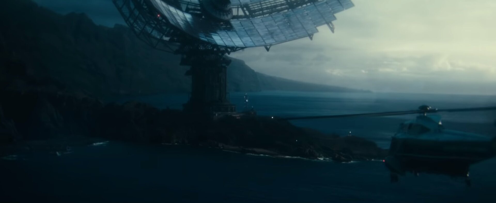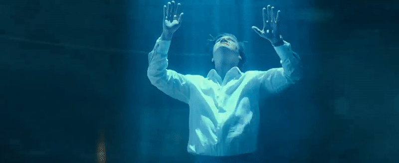 We’re not given chance to ponder, with a cut to a very interesting shot of Lord, arms wide open, in a spinning room as he’s bathed in blue light by a bright, circular opening above him. If this is in that massive satellite tower we glimpsed earlier, that big blue circle could possibly be some form of a major bit of tech from the comics: Brother Eye.