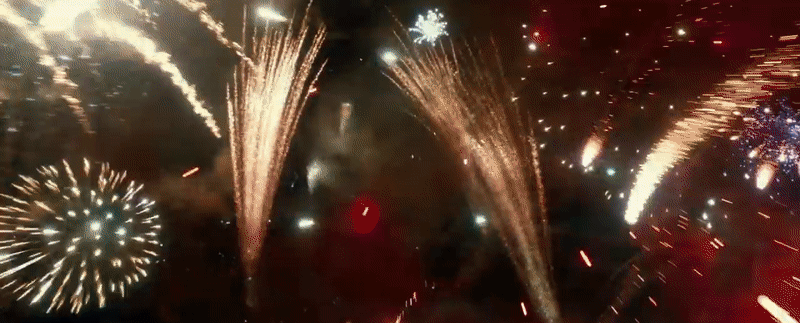 Diana and Steve fly an aircraft through a fabulous fireworks display—interestingly, Diana’s in the same suit we just saw her in in the Washington DC scenes, so maybe this is celebration after the attack, or an event before it. That they’re viewing it from the sky is interesting though—an aircraft wouldn’t typically be allowed that close to a fireworks display, but…