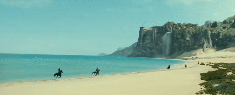 We quickly get what appears to be an explanation for that flashback cut almost immediately, as we return to Themiscyra and scenes of Amazons riding towards a massive, clifftop building that’s basically a giant sphere. It appears to be an arena of sorts, with Amazons leaping between massive poles in what appears to be their own take on the Olympics. Was little Diana’s running her taking part in these trials too? Why would she be flashing back to this during the Washington fight?
