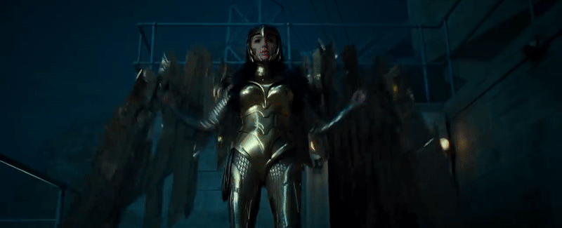 We got to see this armor in the poster released to distract us all from the announcement that Wonder Woman 1984 wouldn’t be at Comic-Con this year, and speculated there that it has roots to a particularly iconic Wonder Woman look from the comics. But the eagle-esque helmet and wings we see here confirm it: this is Wonder Woman 1984’s take on the Golden Armor of Kingdom Come.