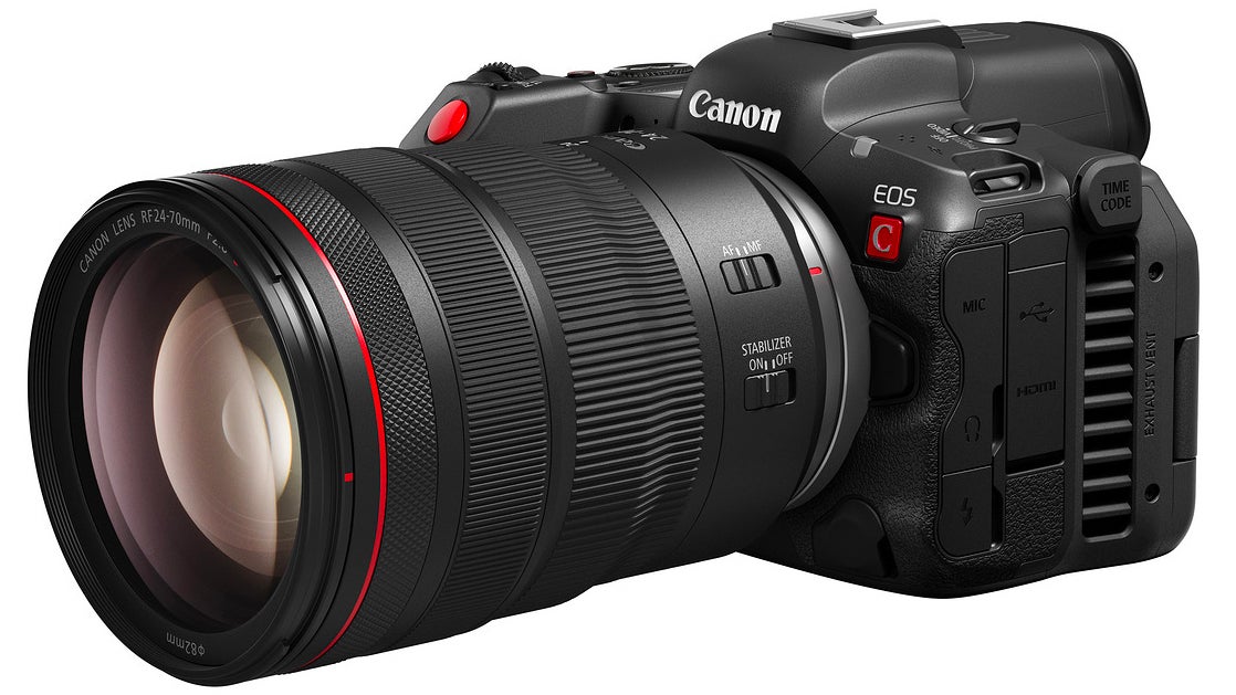 A new three-way power switch lets the camera be quickly and easily switched between video and photo modes, while button labels across the camera are labeled either in white for photo-specific functions or gray for video. In photo mode, the EOS R5 C includes almost all of the features and capabilities of the older R5—features like a 45-megapixel CMOS sensor, an ISO range of 100 to 51,200 (that’s further expandable to 102,400), continuous full-resolution shooting at up to 12 frames per second with its mechanical shutter, or up to 20 FPS with a silent electronic shutter, 1,053 automatic autofocus zones, as well as smart autofocus capabilities that can track eyes, heads, faces, as well as the same features on animals.