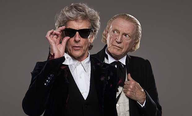 Finally, the BBC has released two images from this year’s Christmas special, featuring David Bradley as the First Doctor, Peter Capaldi as Twelve and someone else potentially making their debut as Thirteen.