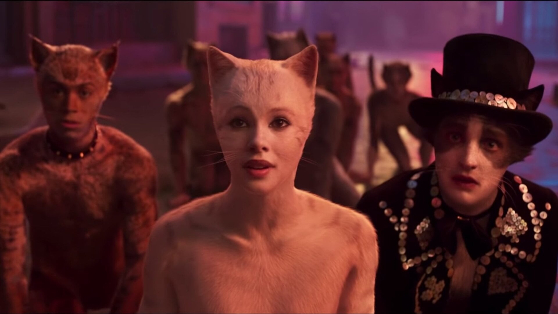 Celebrities dancing in catsuits kinda makes sense so long as you ignore the setting: a Chernobyl-esque purgatory where only mutant cat people survive. They desire emancipation from… something… but we learn nothing about the extent of their presumably human subjugation. The movie hinges on the sole fact that cats are pumped about being cats: practical cats, dramatical cats, pragmatical cats, fanatical cats, oratorical cats, delphic-oracle cats, skeptical cats, etc.