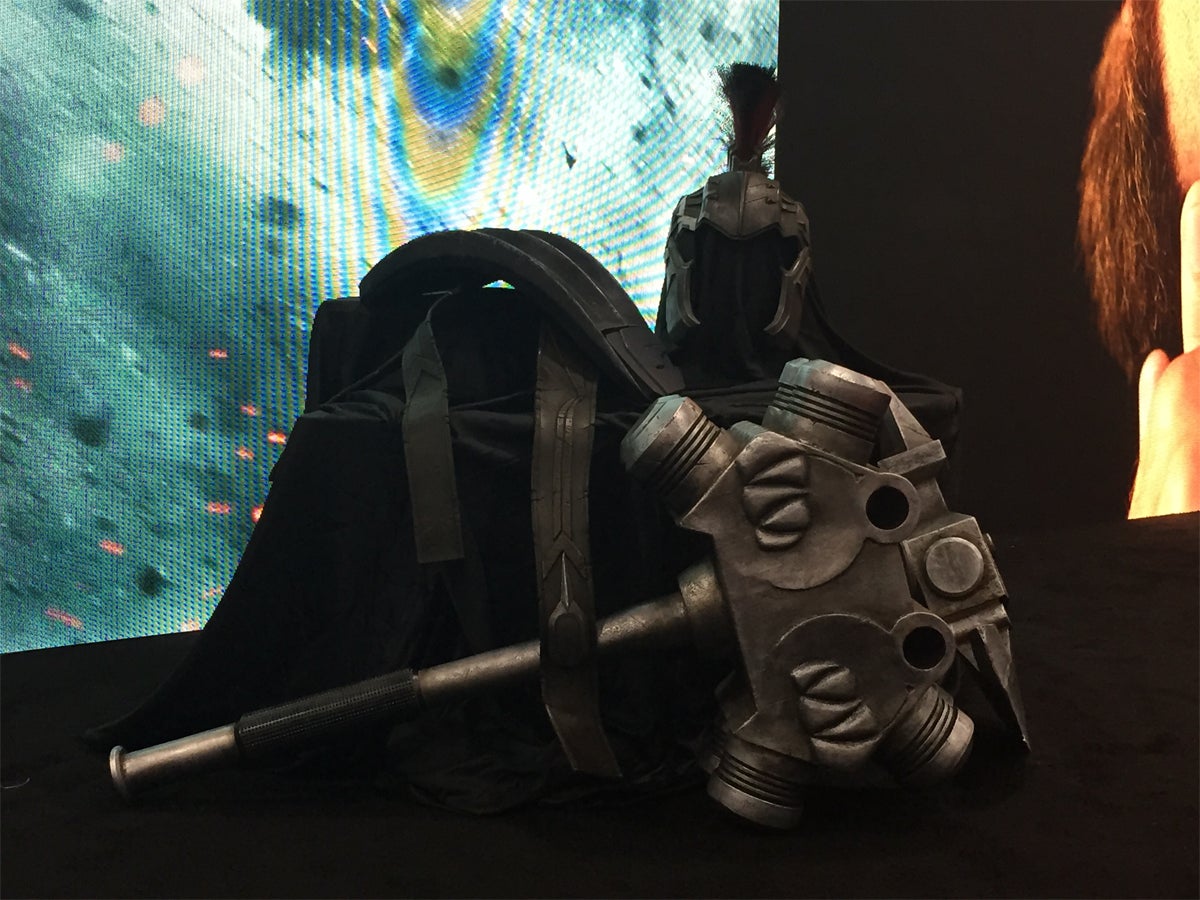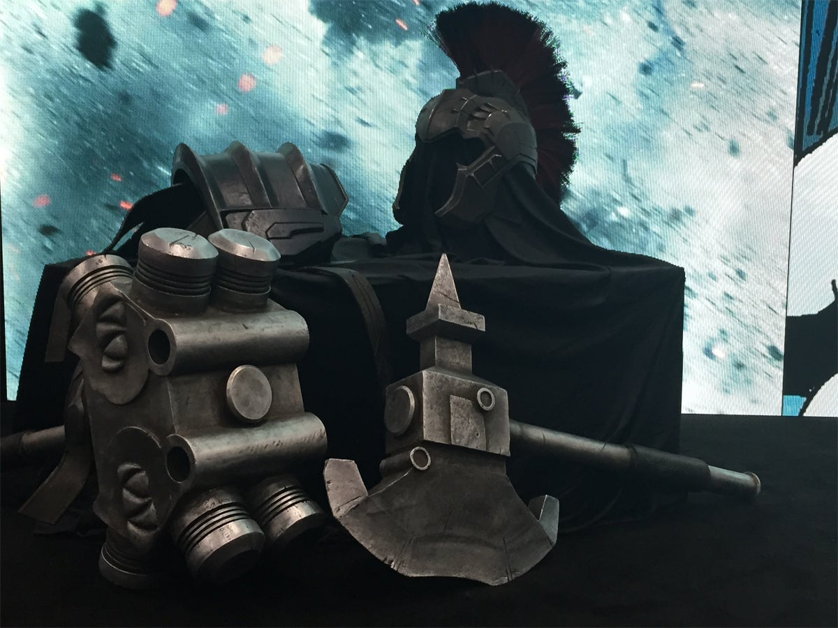 Big hammer and axe? Check. Single shoulder spaulder? Check. Centurion-style helmet? Check, check, and check. It’s cool to see this stuff as it is, but we can’t wait to see it attached to the Hulk himself in Ragnarok. We’ll bring you more from Marvel Studios’ Comic-Con reveals as and when they happen throughout the day. Stay tuned!