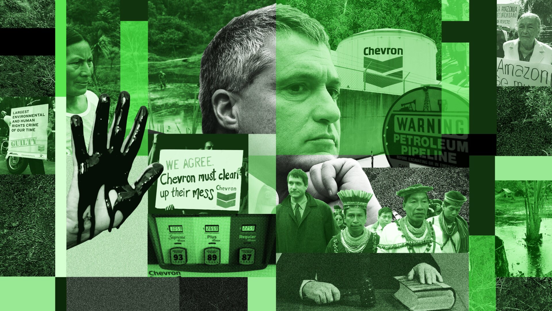 In the 1970s, the multinational energy company Texaco set up oil fields in northeast Ecuador. The operations spilled more than 16 million gallons of crude oil, 80 times more oil than was spilled in BP’s 2010 Deepwater Horizon disaster. The company also dumped billions of gallons of toxic waste into hundreds of unlined waste pits in the lush rainforest using disposal processes that had long been outlawed in Texas. Luis Yanza, an Ecuadorian Indigenous environmental activist and president of the Amazon Defense Coalition, first moved to the affected area as a teenager.