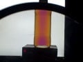 How does a polarizing filter, which can do nothing except take out light that’s jiggling in the wrong direction, suddenly turn this syrup different colors? Because the syrup is, coincidentally, an example of an “optically active” material. These materials do something strange. When polarized light comes into them, they slowly rotate the wavelengths of light. And they rotate the light different degrees depending on its wavelength. Blue light will rotate more than red light, because it has a shorter wavelength. So although the different wavelengths that make up the white light enter the syrup all vibrating the same direction, the different wavelengths are twisted to different angles when they come out of the syrup. When you hold up that second polarizing filter, you are filtering out some colors. As you turn it, you filter out different colors, which makes the syrup turn different colors.