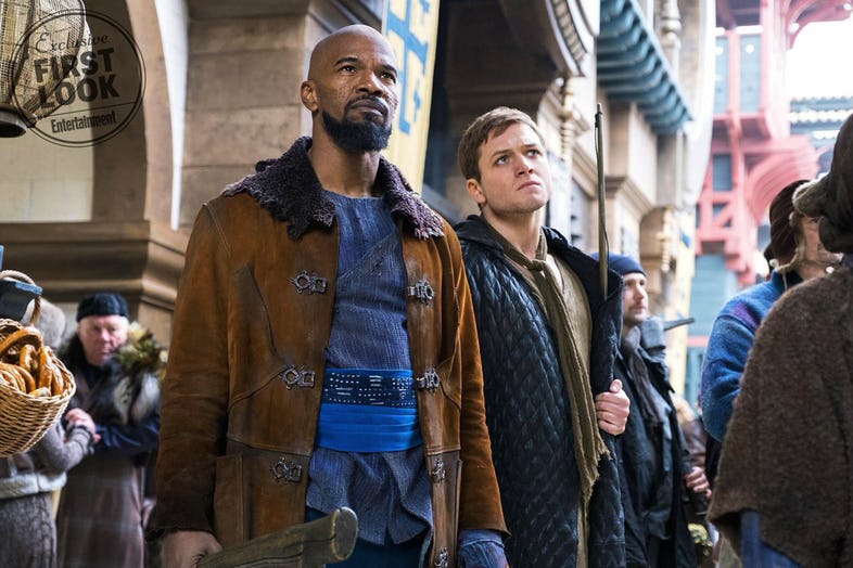Entertainment Weekly has our first look at Taron Egerton as Robin Hood, Eve Hewsen as Maid Marian, and Jamie Foxx as Little John.