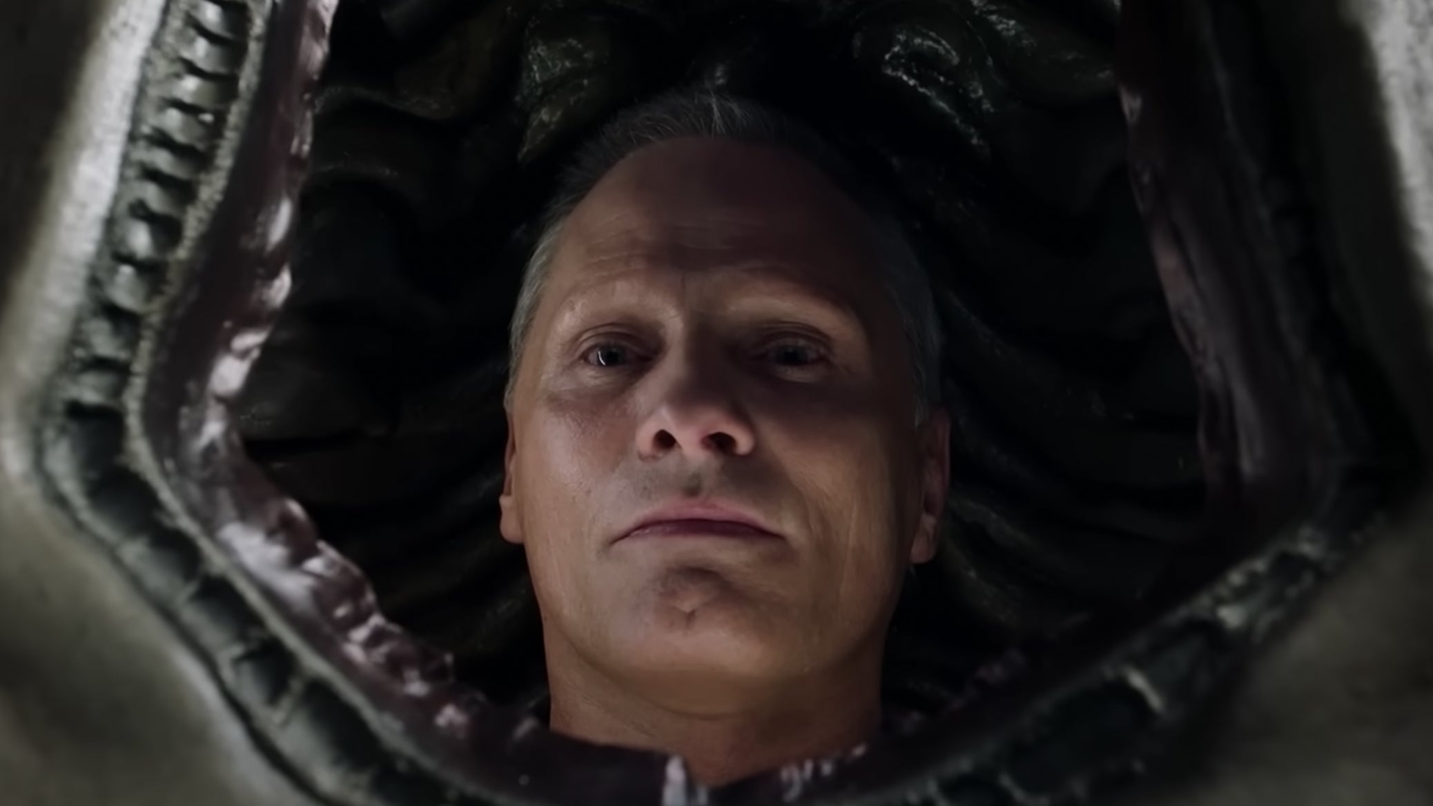 When we are first introduced to Saul Tenser (Viggo Mortensen) in Crimes of the Future, he’s laid up in a bed that looks like a fleshy, rotting orchid, in extreme discomfort. He’s informed that a new hormone has entered his system, a biological measurement of the internal change that he’s experiencing. In our very first moments with the main character of this film, we are already getting the groundwork for the trans allegory that underlines the entirety of David Cronenberg’s latest film.