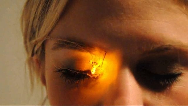 What you get is something that looks like it came out of movie at the height of 80s cyberpunk. It looks rudimentary, and even a little painful for the wearer. I’m not the biggest fan of the I guess goldenrod she uses to paint the eye either. But I can’t help but like the concept. [Ecouterre]