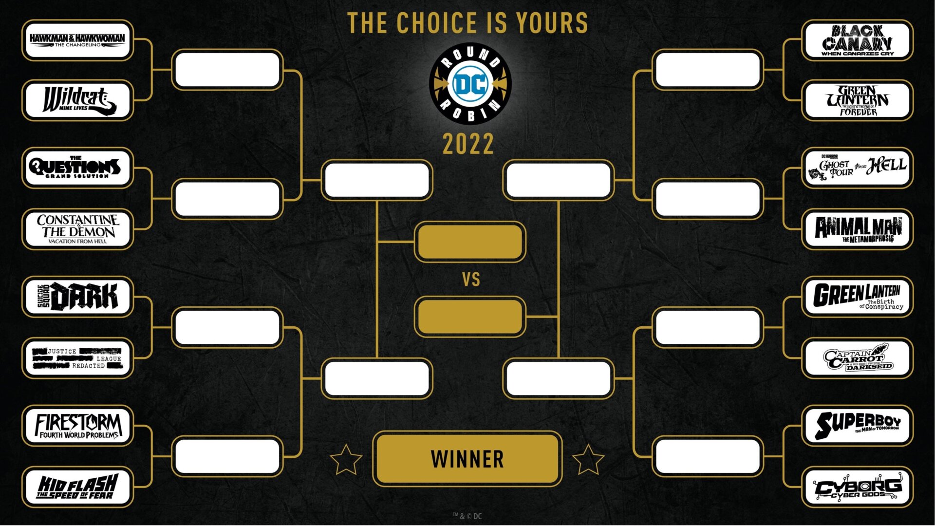 Last year, DC Comics ran its first Round Robin tournament, which wasn’t about an eating contest between Batman’s various sidekicks (although I would definitely read a comic about that). Instead, it was a March Madness-style bracket where DC allowed fans to vote on which six-issue, digital-first series they wanted, while only knowing their titles and brief summaries. The tournament returns today with 16—yes, sixteen—potential comics that fans can vote on. Care to meet this year’s challengers?