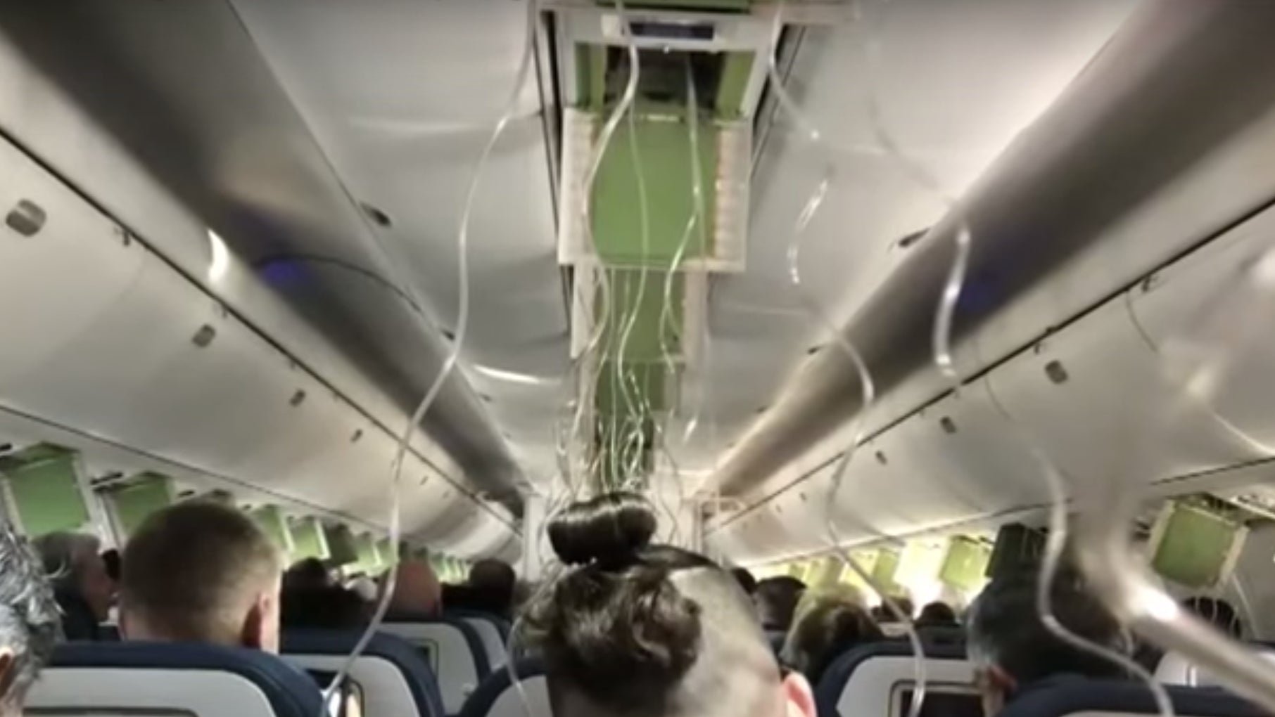 A brief clip captured by DeWoskin and shared to Twitter by WFTS reporter Michael Paluska shows deployed air masks hanging from the ceiling.