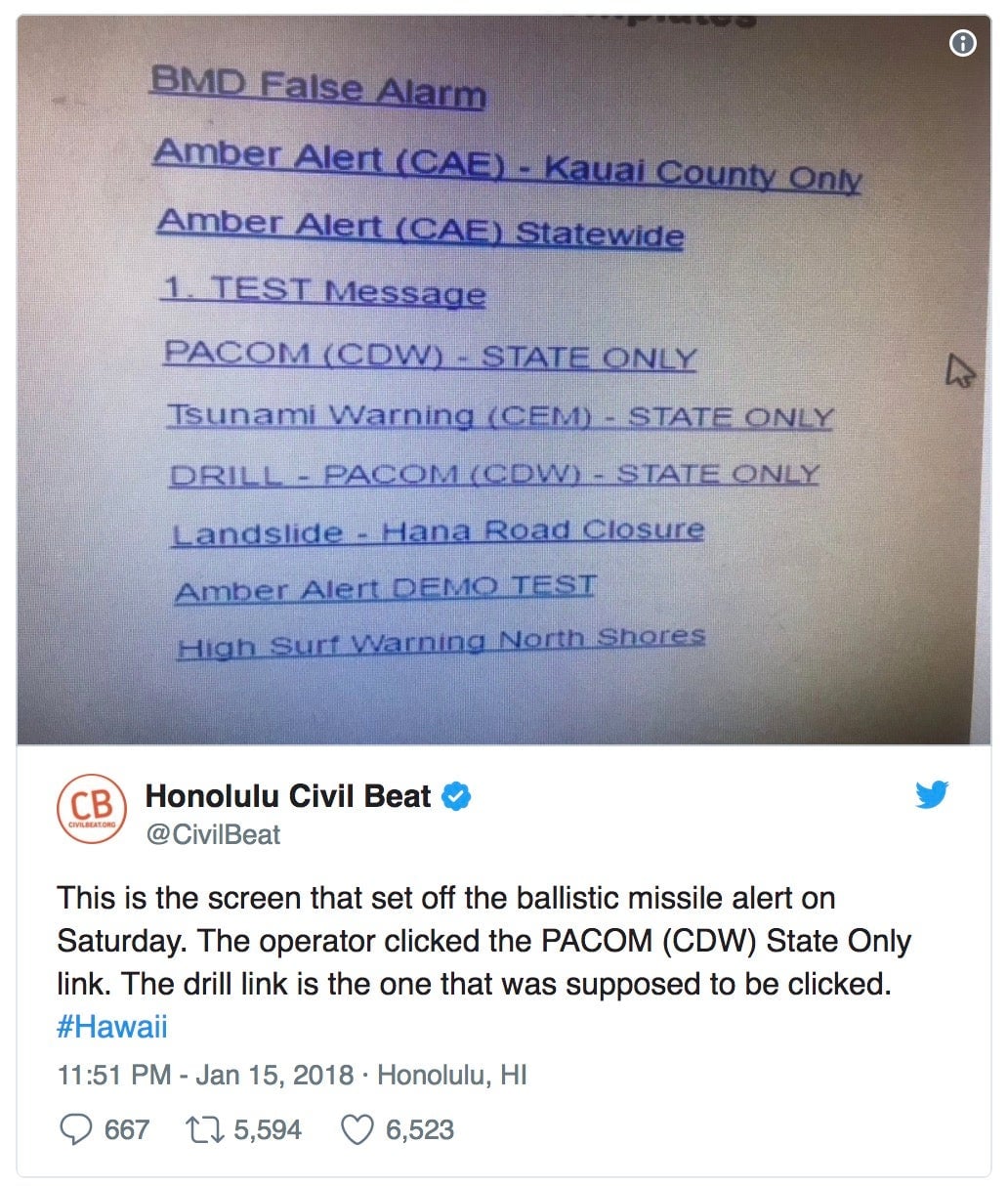 The story surrounding the graphic, it turns out, is more complicated than it originally seemed. The Civil Beat later reported that the photo it published did not actually depict the interface that was used to trigger the alarm.